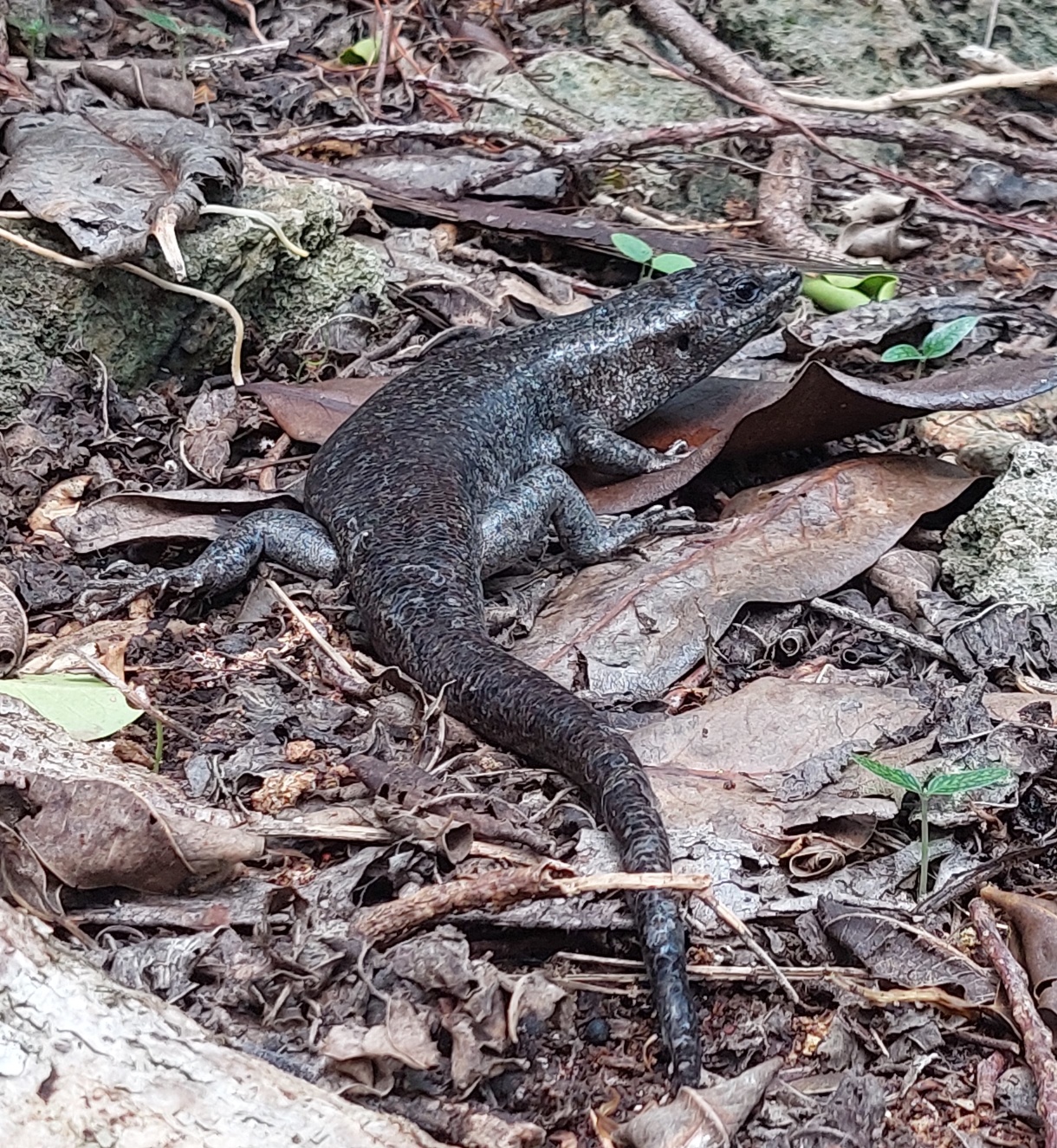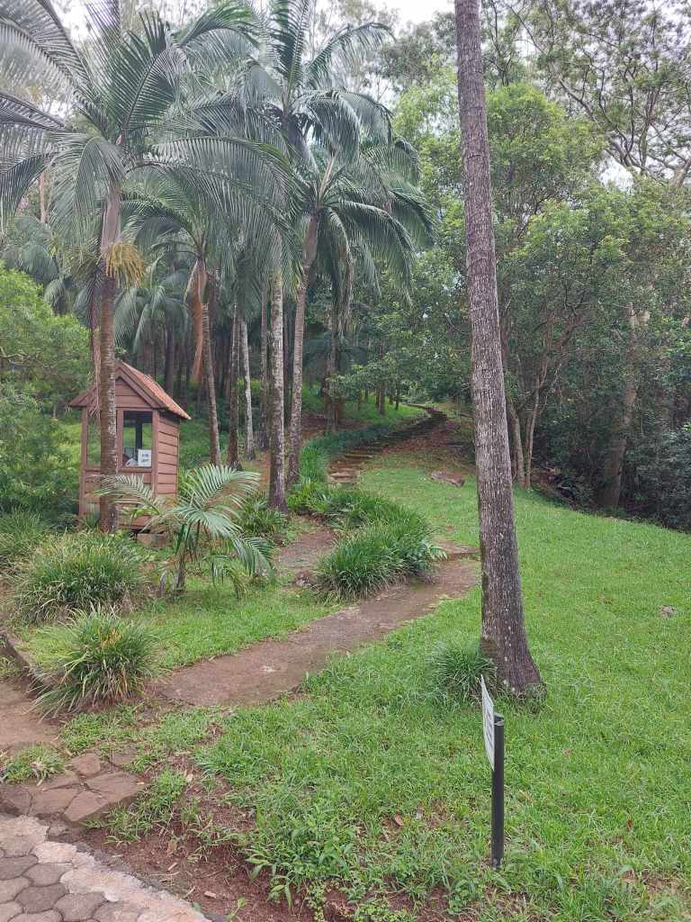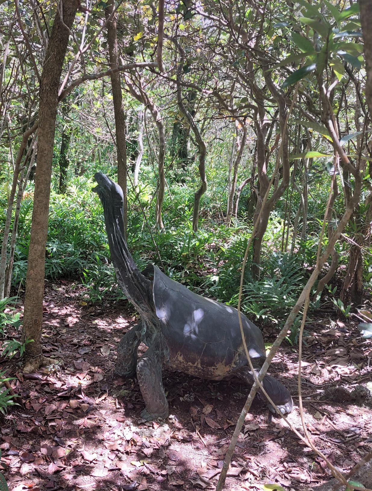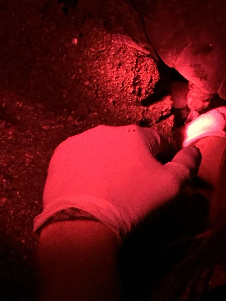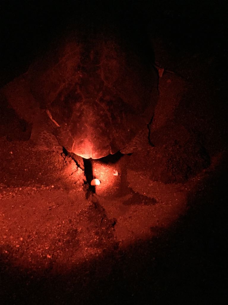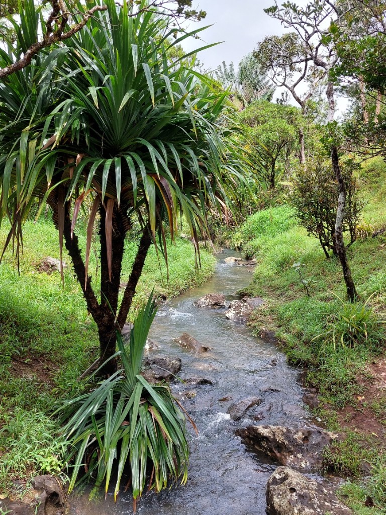 In aller Frühe (man könnte es auch mitten in der Nacht nennen) sammelt er mich vor der Unterkunft ein. Wir (es ist noch ein französisches Mädel dabei) fahren die wenigen Kilometer zum Parkplatz in Le Morne. Als wir um 5:30 Uhr Richtung Berg loslaufen, ist es noch immer stockdunkel. Wir folgen dem spärlichen Schein von Ben’s Handytaschenlampe und meiner Minifunzel, die ich schnell anschalte, nachdem es das zweite Mal unter meinem Fuß fieß geknackt hat. Als ich auf den Boden leuchte, erklärt sich meine Trefferquote. Große muschelartige Schnecken bevölkern den feuchten Boden.