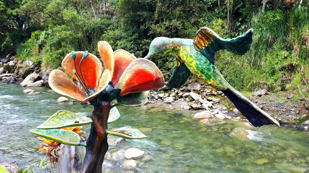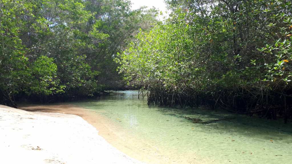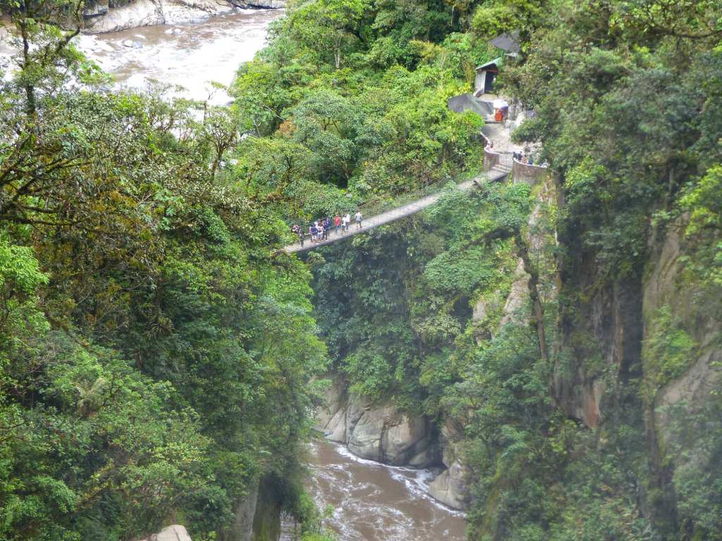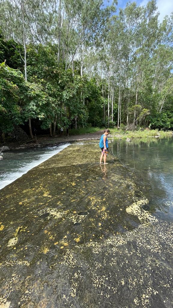 Die Landschaft, der Fluss und die Wasserfälle entschädigen für alle Mühen, es ist traumhaft schön. Alles ist knallegrün, wild und ungezähmt verwachsen, dazu das beruhigende Rauschen des Wassers. Allmählich müssten wir am Meer ankommen und optimalerweise sollte dort auch ein Weg hinauf- und zurückführen. In der Ferne hören wir leise Stimmen. Scheinbar sind hinter dem ganzen Gestrüpp irgendwo Menschen. Dann muss es auch einen Weg geben.