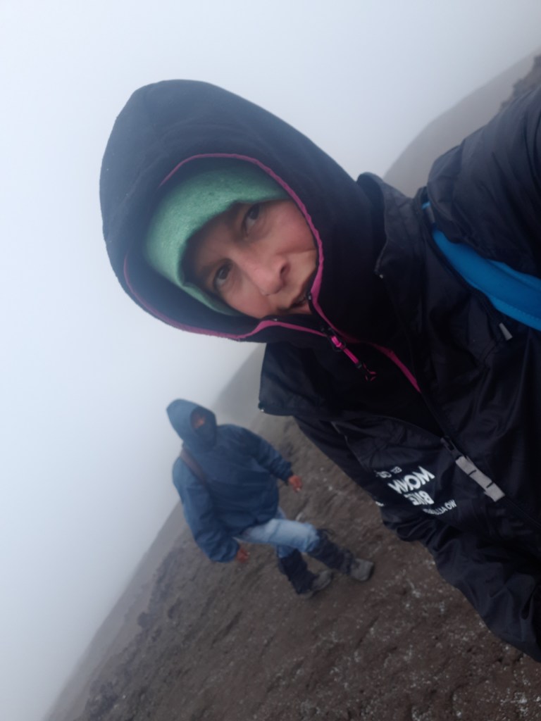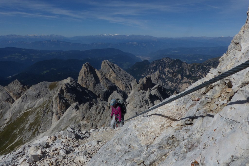 Ein Blick auf die Uhr sagt, dass wir seit einer gute Stunde unterwegs sind. Mit einem Pärchen habe er neulich bis hierher zweieinhalb Stunden gebraucht, plaudert er munter. Nun verstehe ich, warum wir so viele Tage auf die passenden Wetterbedingungen gewartet haben. Bei Regen wollte ich hier nicht in der steinigen Rinne stehen. Meter für Meter klettern wir weiter nach oben, der Ausblick wird immer grandioser. Ich fasse nicht, dass ich endlich diesen Berg besteige! Etwas überrascht über „so viel Kletterei“ bin ich allerdings. Alles nicht wirklich schwer, dennoch würde ein falscher Tritt an an der falschen Stelle unschön enden. Der Aufstieg ist ja eher selten das Problem. Den gleichen Weg geht es allerdings zurück und das könnte stellenweise knifflig werden.