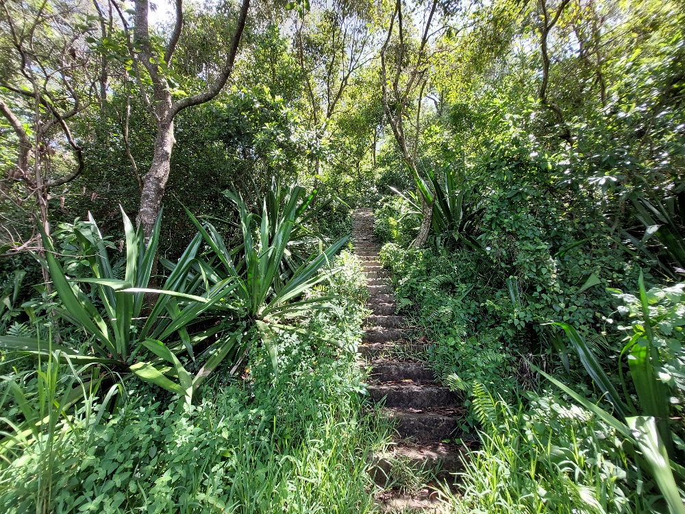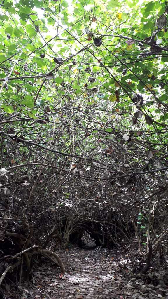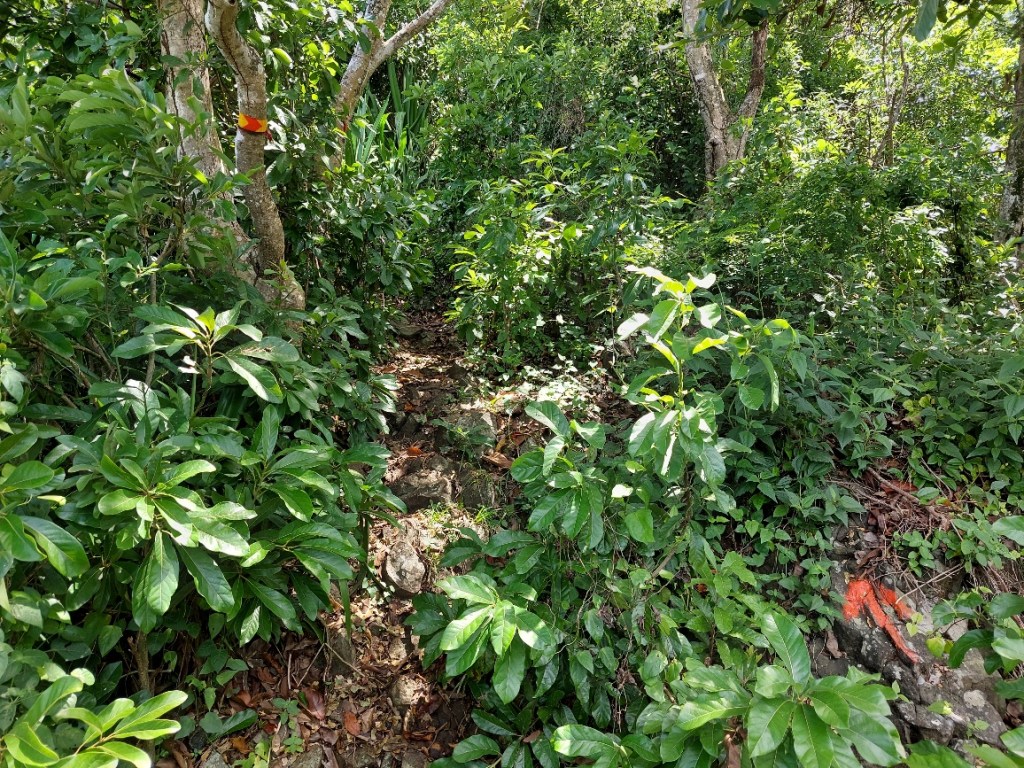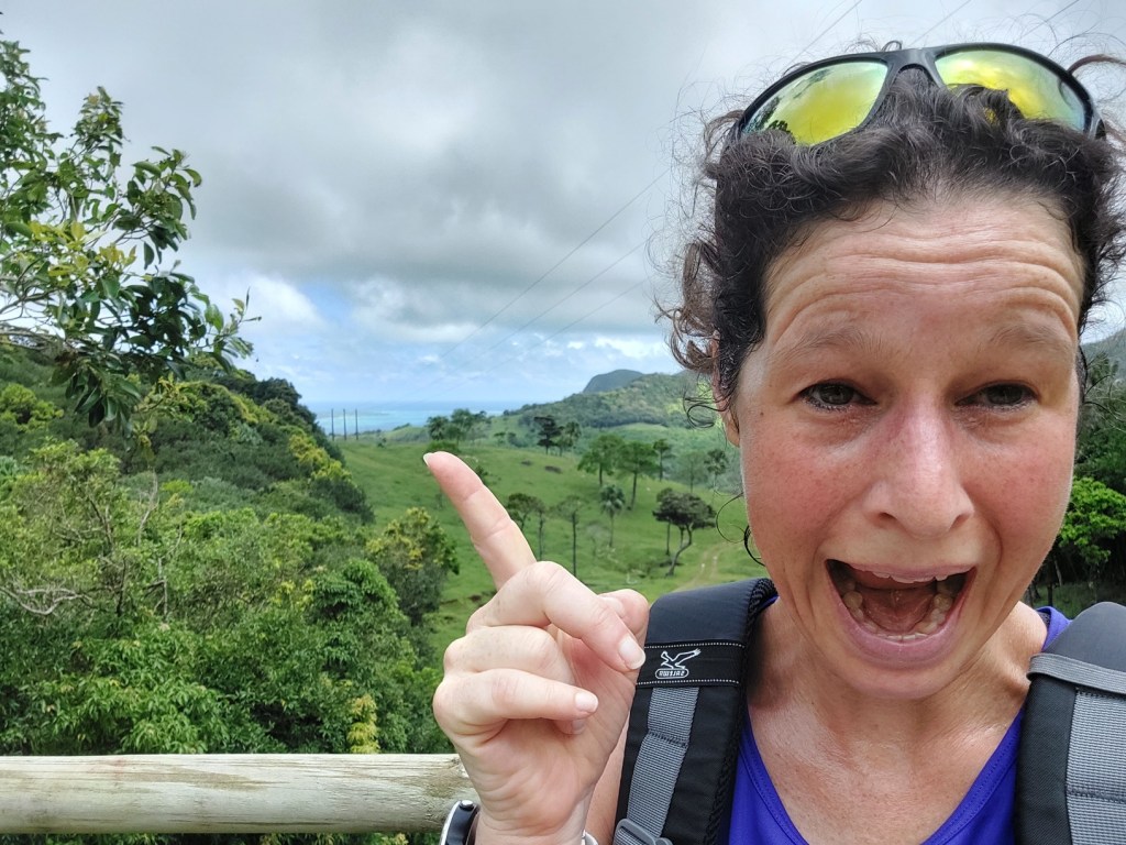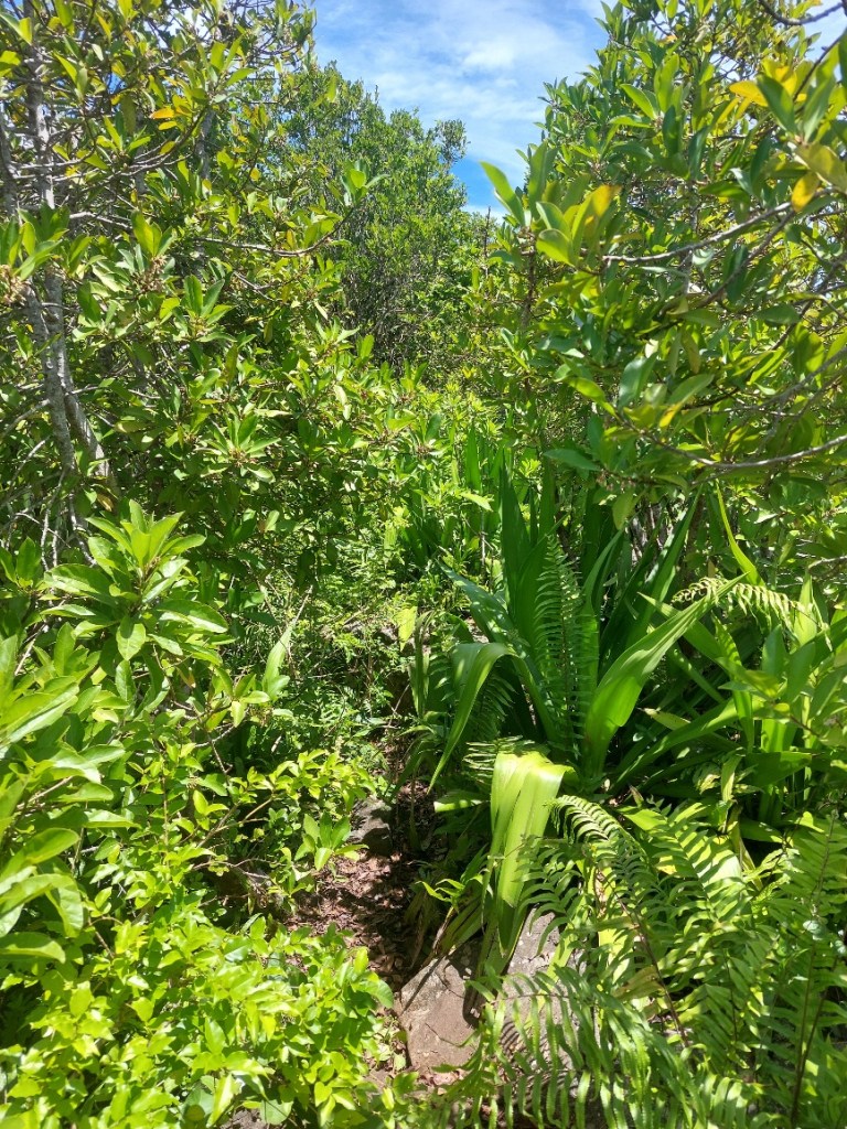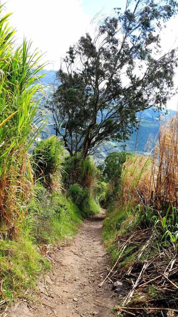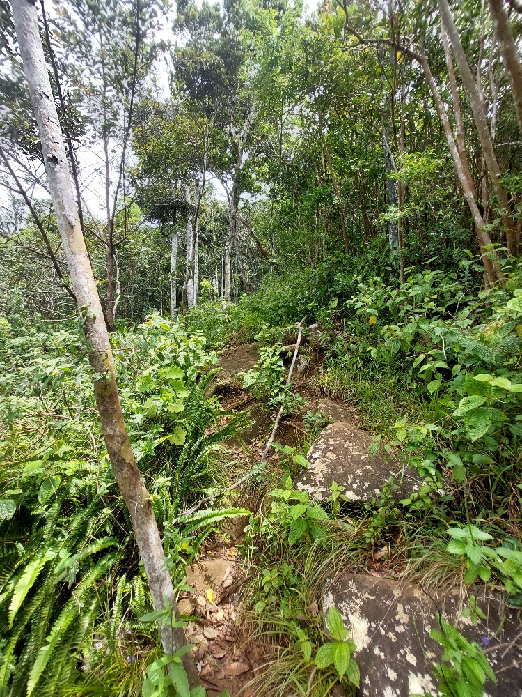 Es war zu erwarten, dass Ben ein ordentliches Tempo vorlegt. Für ihn ist der Aufstieg zum Le Morne quasi sowas wie der morgendliche Gang zum Bäcker. Mehrmals wöchentlich rennt er seinen Hausberg rauf. Wir Mädels versuchen motiviert Schritt zu halten. Allmählich dämmert mir, warum Ben auf den frühen Aufbruch pochte. Da die Sonne noch nicht da ist, sind die Temperaturen zwar noch moderat, aber dennoch schon kuschelig. Und die Luftfeuchtigkeit ist heftig. Der Weg steigt an, das erste Stück kenne ich bereits von meiner Laufrunde kürzlich. Die Suppe strömt aus allen Poren, während wir dem leichtfüßigen Ben hinterherhecheln. Der Geruch des Waldes wird plötzlich ganz intensiv. Wir drei sind allein auf weiter Flur. Die Morgendämmerung setzt ein und schon bald brauchen wir kein Licht mehr.