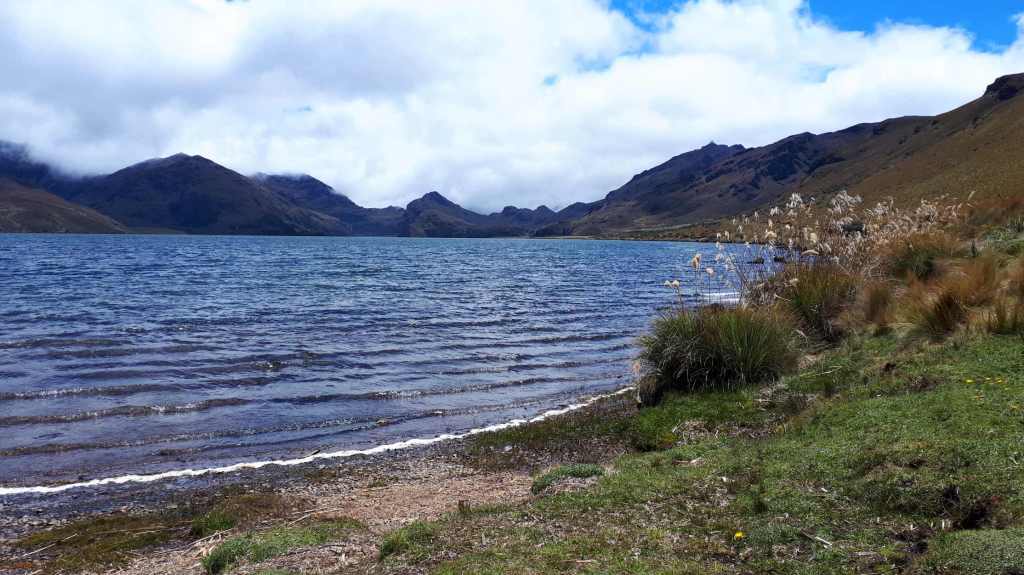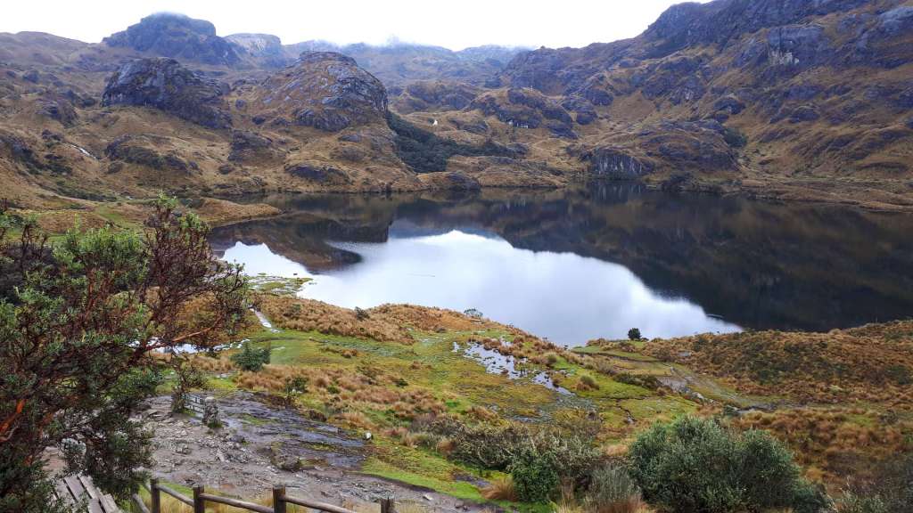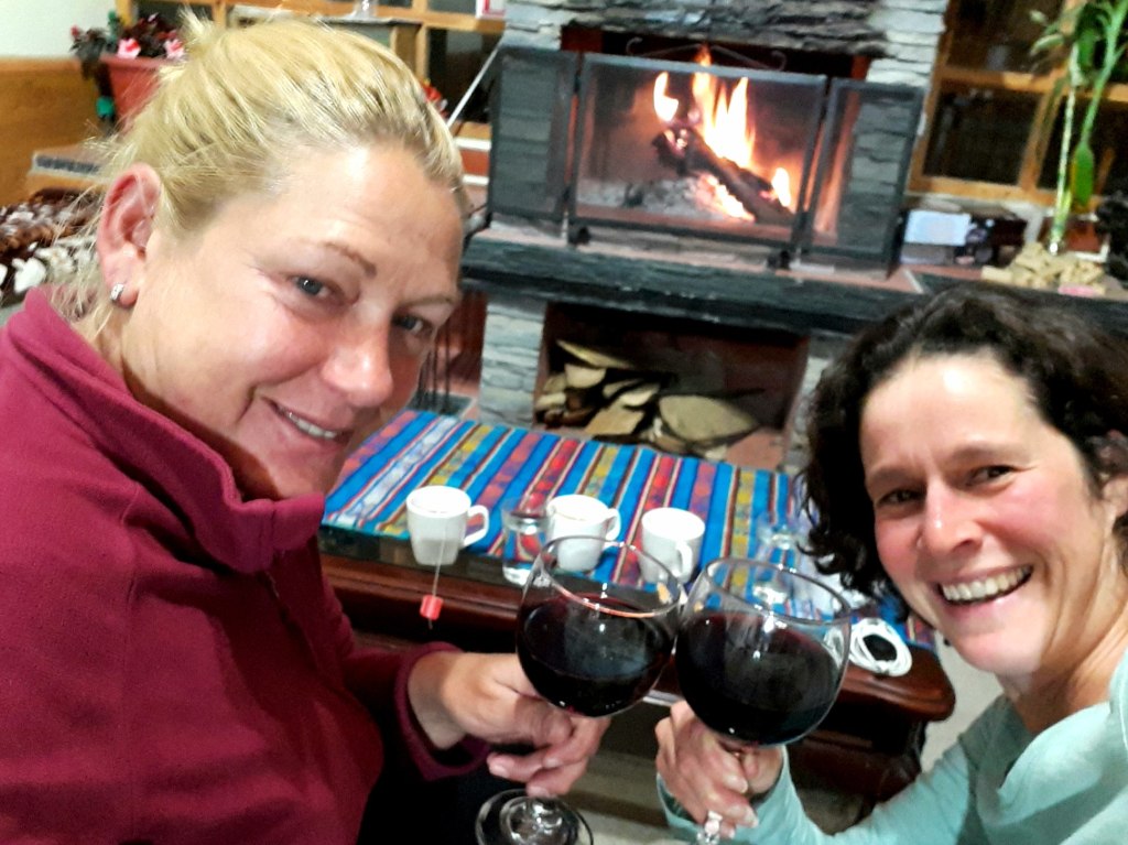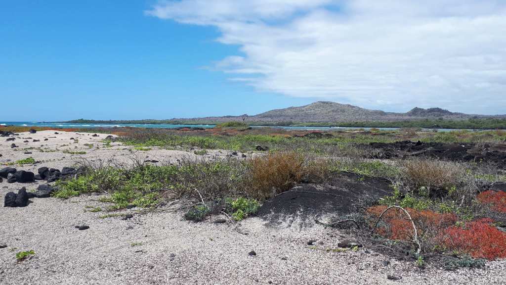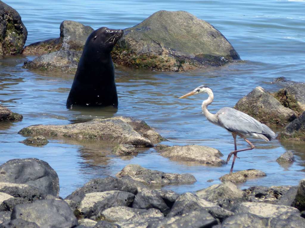 Wir bahnen uns durch die Pampa voran und plötzlich ist Meer in Sicht! Über schwarze Steine und jede Menge Treibholz balancieren wir am Ozean entlang und spotten rum, dass hoffentlich nicht Ebbe ist, und binnen der nächsten Sekunden prompt die Flut kommt (sehr realisitische und konkrete Todesvorstellungen) und uns fortreißt. Erleichtert finden wir den Pfad, der von der Meeresebene aufs Festland hinauf führt. Ein dickes Tau, das einige Meter oberhalb an einer Holzleiter endet, hilft beim Anstieg. Mit ihrem zunehmend schmerzenden Handgelenk zieht sich Janine nach oben.