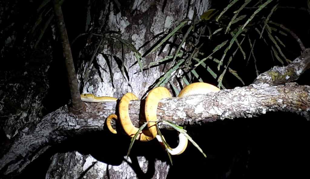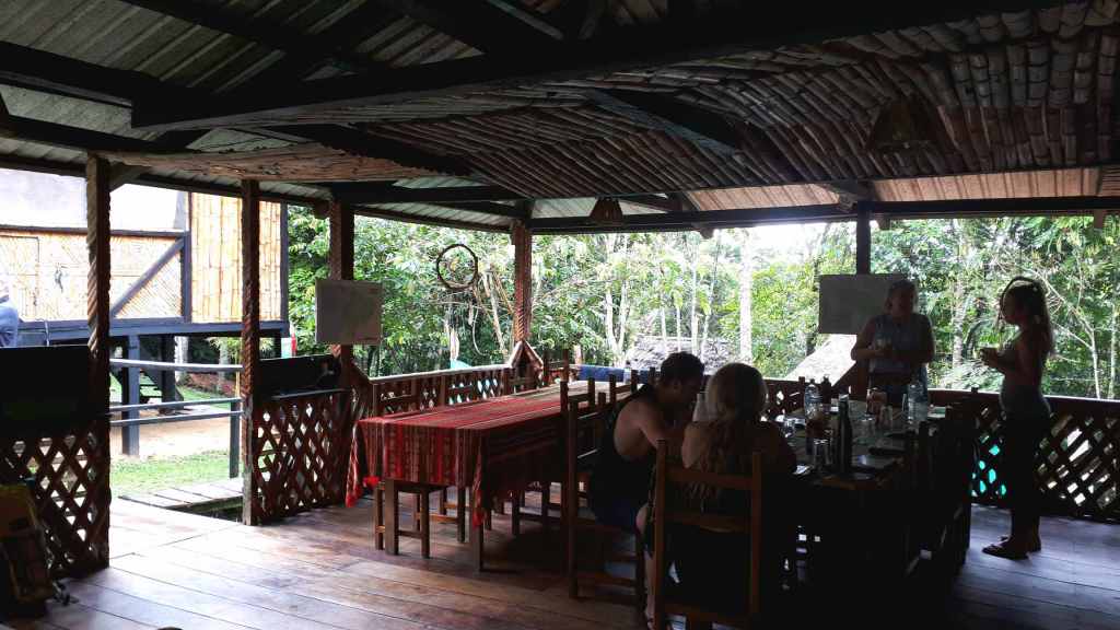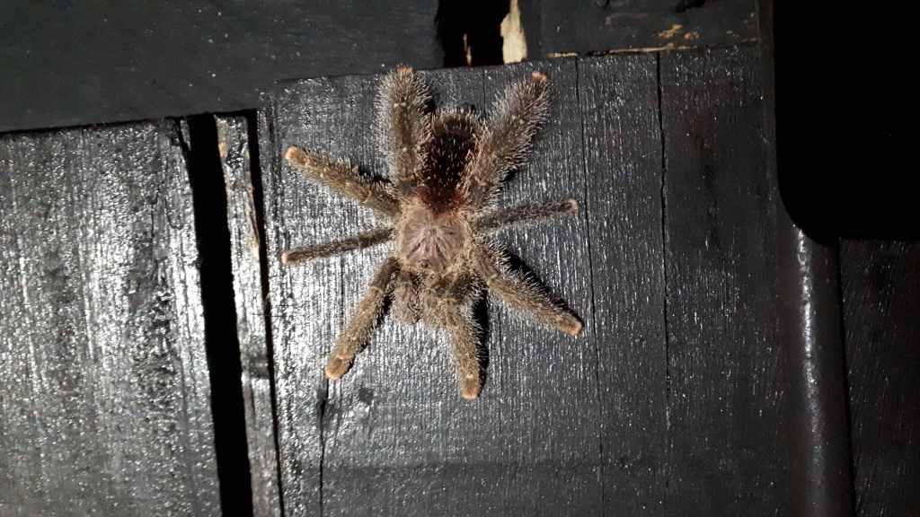 Nebenbei lernen wir eine wichtige Tropen-Überlebensstrategie: Siehst du nicht was unterm Tisch passiert, dann mal lieber hoch die Latschen! Kakerlaken und Riesenspinne rennen unter den Tischen und zwischen den Füßen der Gäste rum. Als ich mit aufgerissenen Augen der ponygroßen Spinne nachstarre, während diese auf den Flipflop eines Gastes zurennt… lassen wir das! Meine Füße berühren erst wieder den Boden, als wir aufbrechen.
