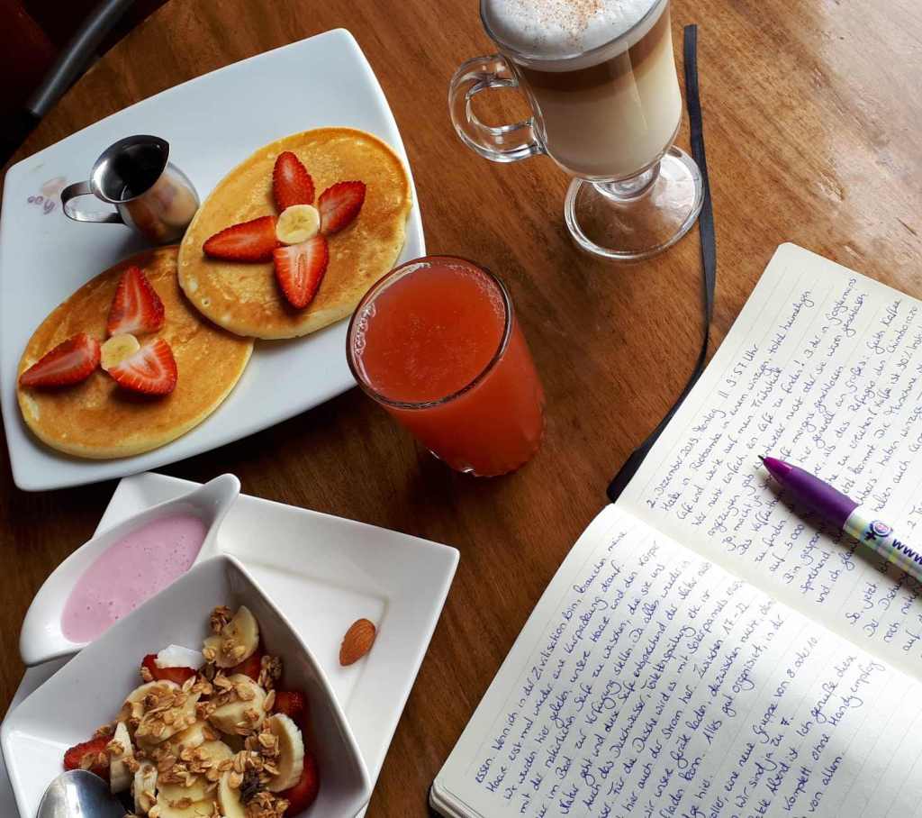 Nach so viel abenteuerlichem Frühsport braucht Frau erst mal Frühstück. Die Brech-Pillen entfalten jetzt vollständig ihre Nachwirkungen. Wir sind hundemüde. Dass ich von dem halben Glas Rumgemisch angezwitschert bin und Seegang im Kopf habe, macht nicht wacher. Wir hauen uns aufs Bett und dösen ein.