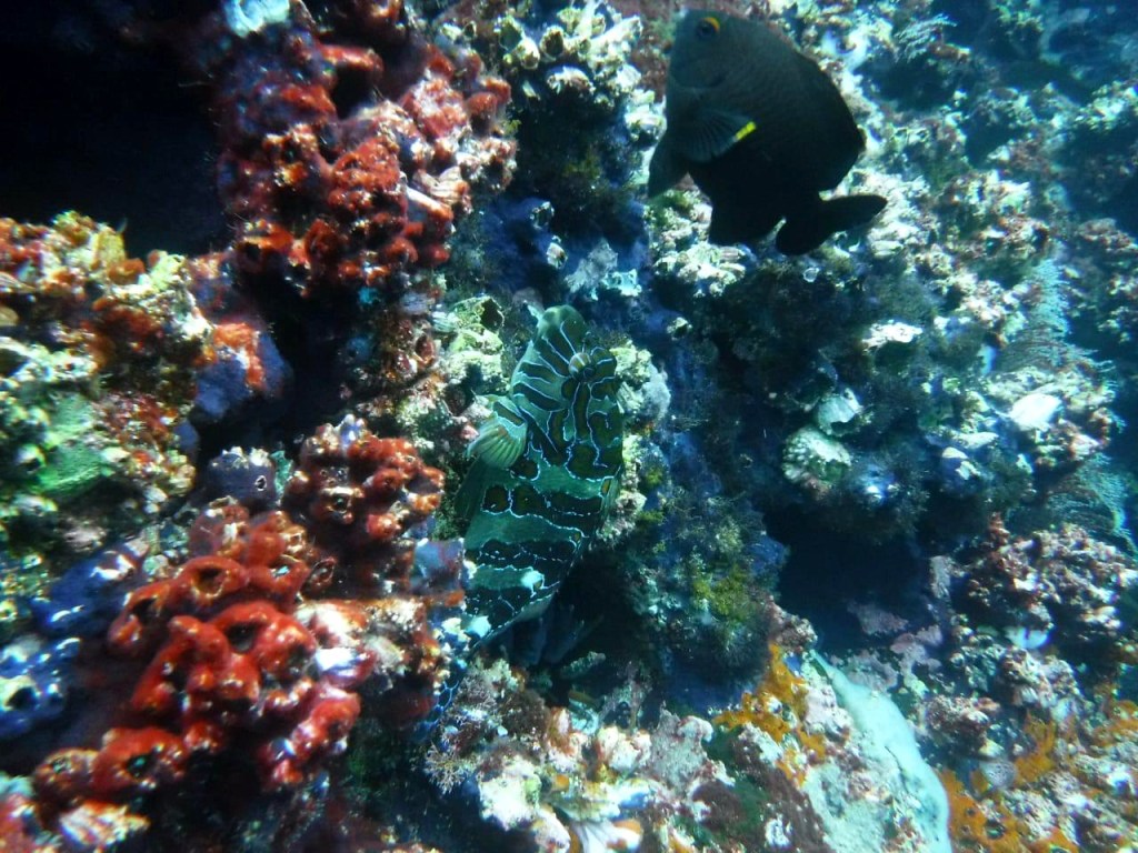 Die Fahrt geht weiter zum fotogenen Crystal Rock. Ein kleiner Felsbrocken mitten im Ozean. Streng genommen ist es kein Felsen, sondern ein Korallenriff. Obendrauf abgestorben, unter Wasser jedoch voll intakt. Wir schippern gemütlich drumrum und bewundern lachend die goldene Weihnachtsgirlande, mit der das schwimmende Gestein geschmückt wurde! In einem Monat hängen dann vermutlich bunte Ostereier dran.