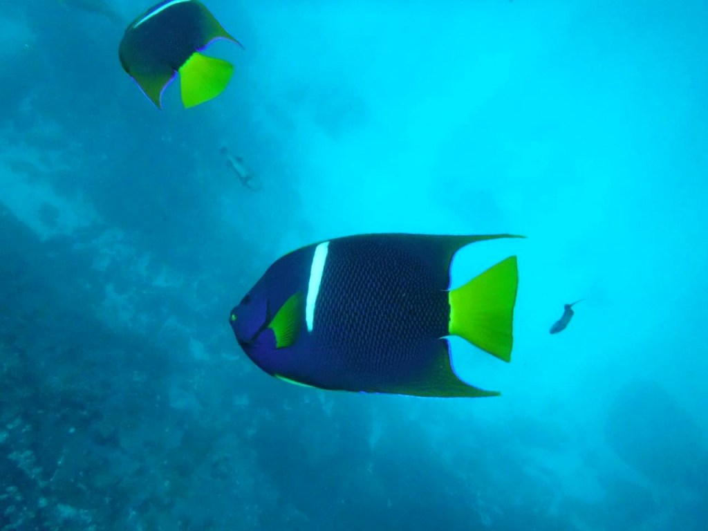 Ich kämpfe mich durch die Strömung zurück zum Boot und schmeiße die Flossen hinein, um an der rutschigen Leiter hinaufklettern zu können. Völlig außer Atem falle ich auf den Sitz. Das ganze Prozedere wiederholen wir weitere Male. Kardiotraining vom Feinsten. Eine Stunde Spinning ist Kindergarten dagegen, witzele ich. Eine Frau aus unserer Truppe erklärt, dass es sich bei diesen blauen Leuchtpunkten unter Wasser um Plankton handelt. Hier gäbe es sehr viel davon, meint sie und erzählt weiter, dass es bei Berührung auf der Haut wie Brennesseln bitzele. Jetzt weiß ich endlich, was es mit dem komischen Neonzeugs auf sich hat und beim nächsten Schnorchelgang spüre ich das bitzeln tatsächlich auch.