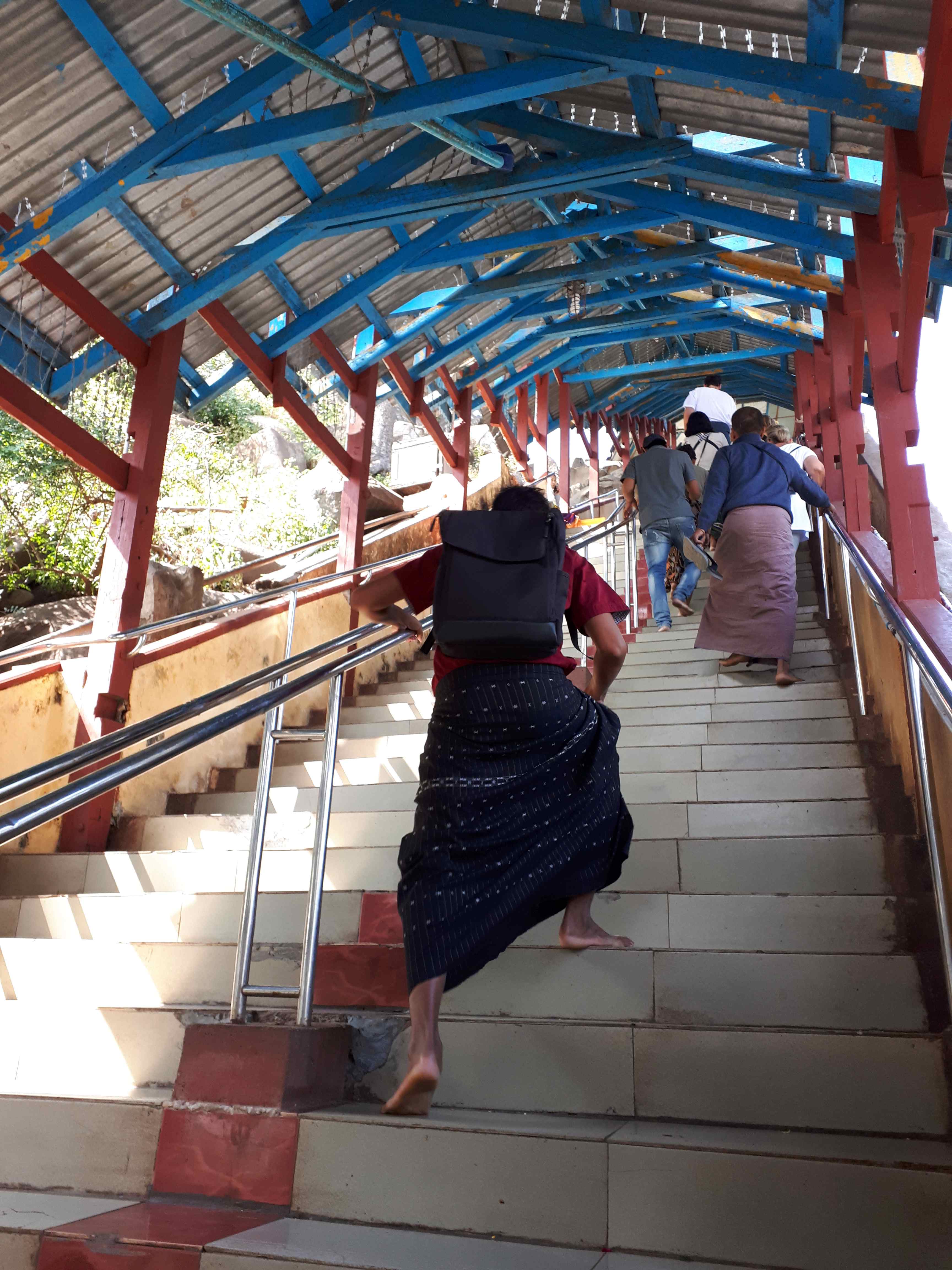 Beim Abstieg (es ist noch nicht mal 8 Uhr) brennt die Sonne bereits gnadenlos. Der Rückweg dauert tatsächlich länger als der Aufstieg. Wir geraten in die Rushhour und müssen warten, bis eine nicht enden wollende Gruppe stöhnender und schwitzender Menschen an uns vorbeigeschnauft ist. Wenn die bereits hier schon kämpfen… das schwere Stück liegt erst vor ihnen. Gegen 9 Uhr erreichen wir das Auto. Durchgeschwitzt, randvoll mit Endorphinen und stolz wie Bolle.