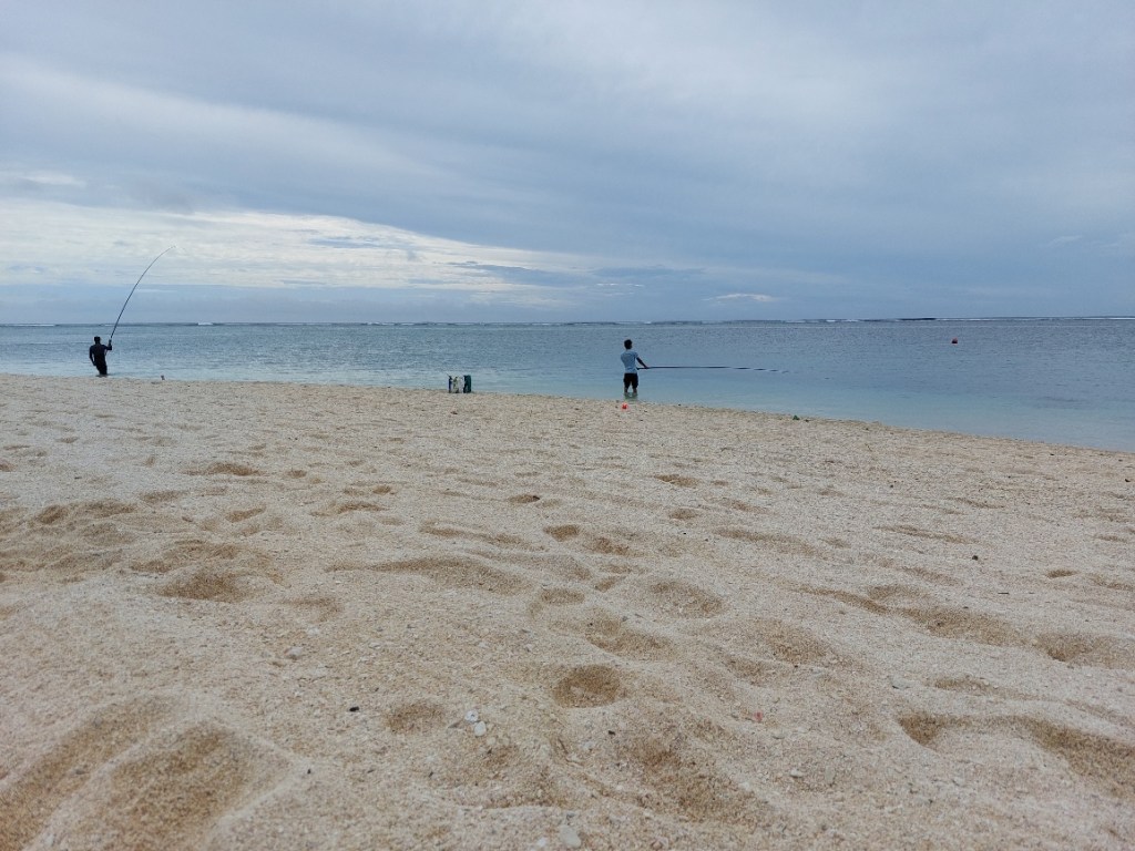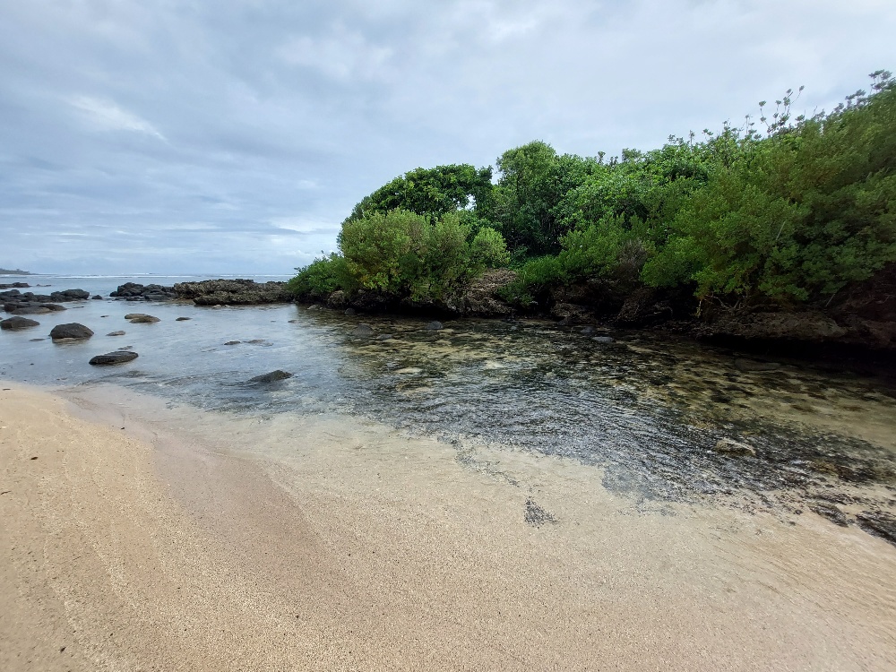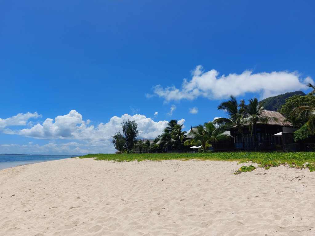 Gut, dann Spontan-Plan B, auf zum Strand nach Blue Bay. Nach der Hitze des Tages ein Cooldown am populären Beach, diese Idee haben am Feiertag noch weitere zwei, drei Leute. Der Strand ist brechend voll, die Badebucht nicht minder. Alles tümmelt sich im Wasser, es ist trubelig und laut.