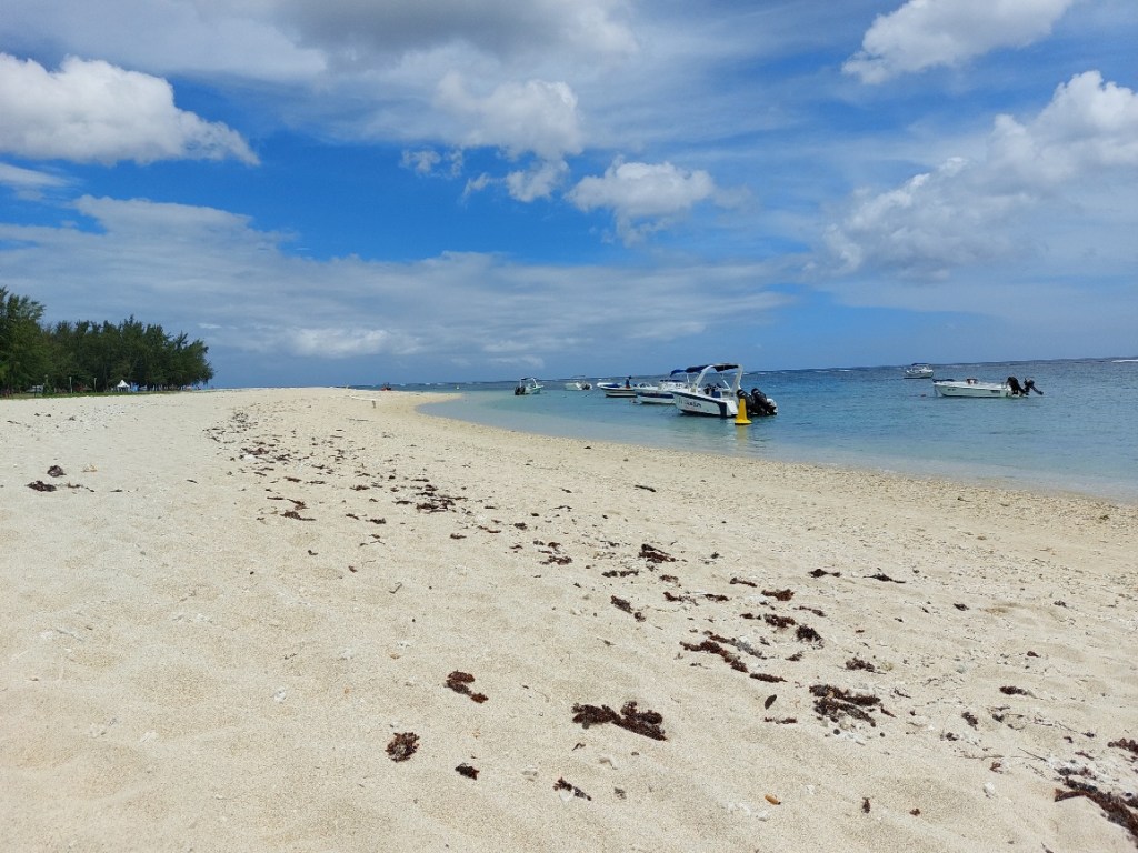 In Strandnähe von Le Morne gibt’s die letzte Schnorchelrunde. Vom Boot aus entdecken wir einen riesigen Stachelrochen auf dem Meeresboden. Der Truppe (alle mit Taucherfahrung) isses hier nicht mehr spektakulär genug, dafür hüpft Janine mit mir ins Wasser. Sie hat sich etwas regeneriert und wird wenigstens zum Ende mit Unterwasservergnügen entschädigt. An Bord versorgt uns Navins Frau mit selbstgemachten Samoussas und einem leckeren Fruchtsaftcocktail mit hauseigenem Rum Arrangé. Die Brühe hat es in sich. Wirkt sofort, trotz unserem abendlich regelmäßigen „Rum-Gelungere“. Nicht wie mein klassischer Frühschoppen-Kaffee, den der nüchterne Kadaver am Morgen so gewohnt ist.