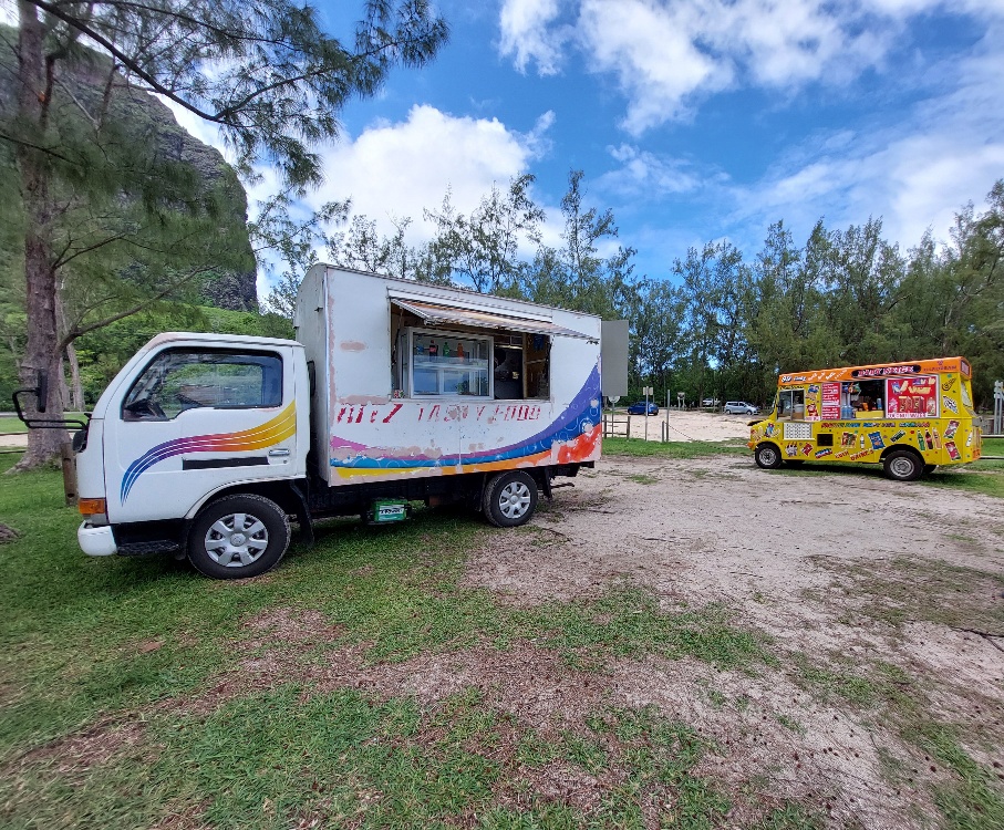 12. März 2022 – Am frühen Mittag erreichen wir Mahébourg. Dank Teamwork während der Autofahrt. Da Linksverkehr herrscht und der Fahrer (Janine) auf der rechten Seite sitzt, befindet sich das Schaltgetriebe ebenfalls auf der linken Seite. Janines Handgelenk lässt eine Schaltbewegung nicht mehr zu. Wie gut, dass wir drei uns non-verbal verstehen; Janine tritt die Kupplung, die Karre quietscht sich ins Koma und ich schalte (liegt ja sowieso auf meiner richtigen Seite). Funktioniert prima!