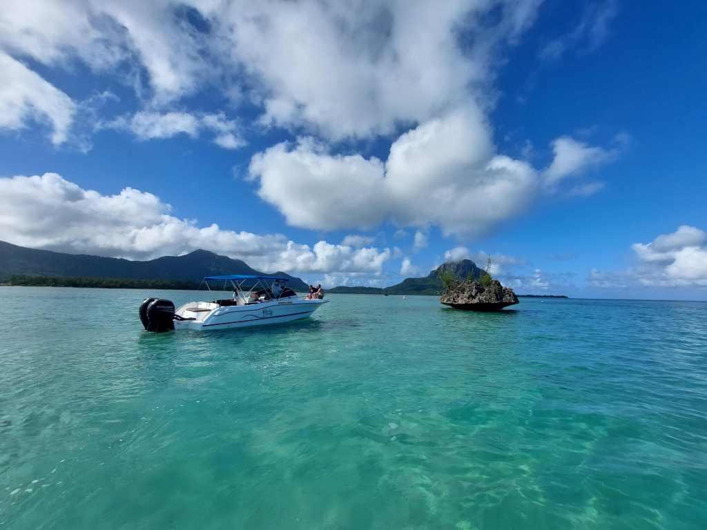 10. März 2022 – Vor unserer Unterkunft hält ein dunkler Kombi. Wie mit Ben, unserem Vermieter besprochen, werden wir pünktlich um 5:25 Uhr an unserer Villa abgeholt. Er hat kurzfristig für Janine und mich zwei Plätze bei Dolphin Warrior organisiert und uns eingebucht. Gespannt sitzen wir im Auto, während wir von Chef Navin und seiner Frau zum nahegelegenen Bootsanlegeplatz in La Gaulette gefahren werden. Dort besteigen wir das Boot und warten, unter dem Sternenhimmel sitzend, auf den Rest der Truppe. Guter Zeitpunkt die Brechpille einzuwerfen! Alles andere wäre grob fahrlässig und wie eine schriftliche Zustimmung auf mein Todesurteil und dem anschließend qualvollen Dahinsiechen. Janine und ich zimmern uns die Reisetabletten ein und warten, dass sie das tun, wofür sie erfunden wurden.